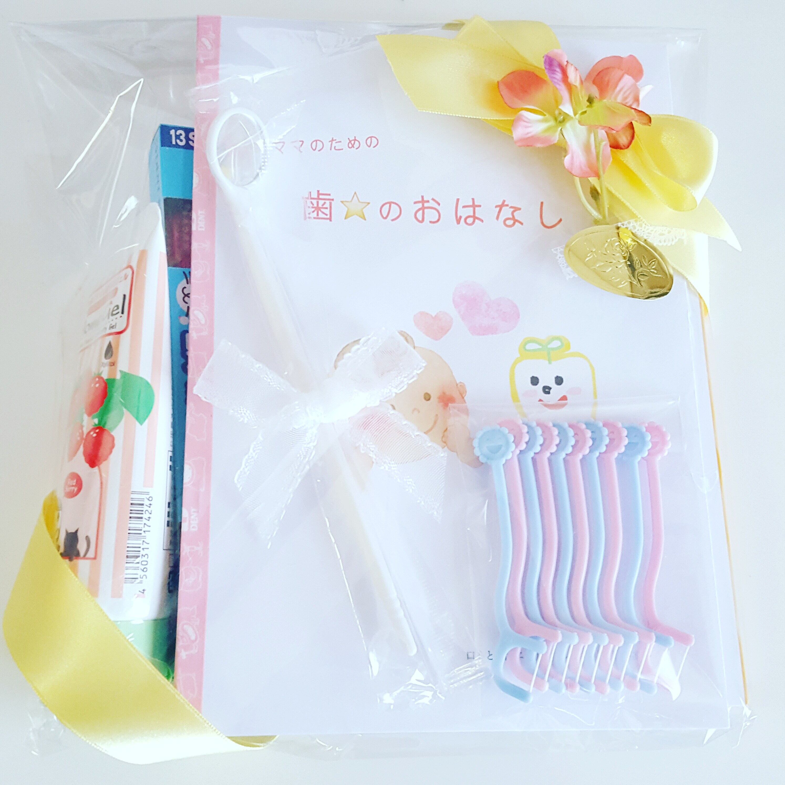 歯科衛生士が選んだ、虫歯予防や歯並びを良くするための情報のつまった「オリジナル冊子」と、お子さんのお口のケアにオススメのアイテムのセット。